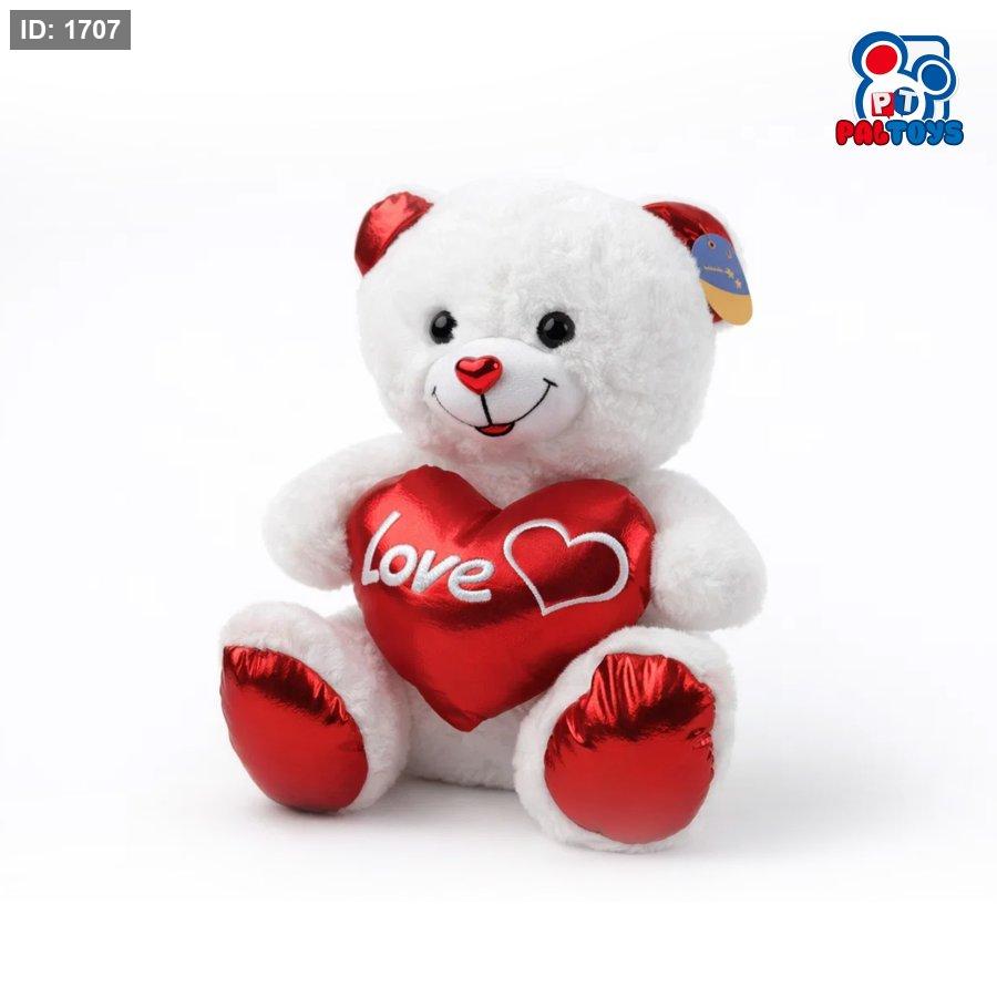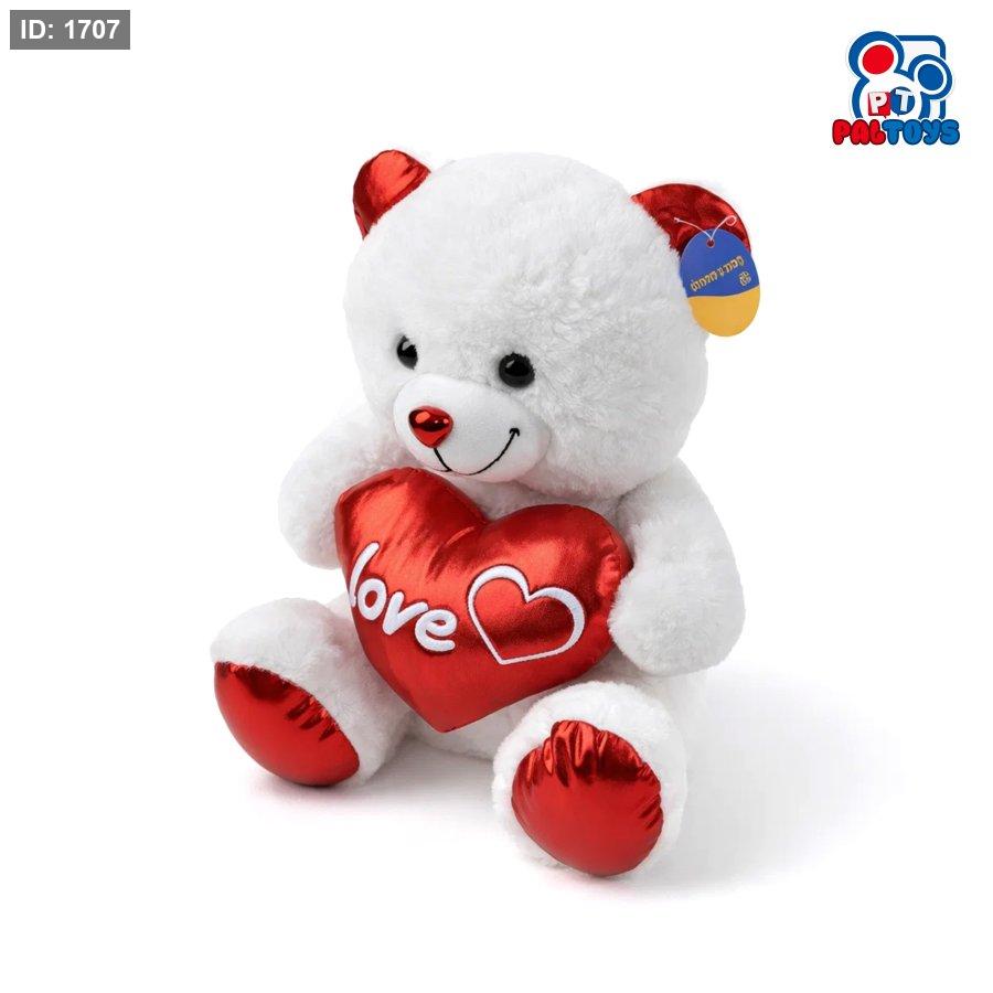 تيدي الحب الأحمر – دبّ ناعم الملمس، بلون أبيض أنيق يحمل قلب أحمر لامع مليان مشاعر.