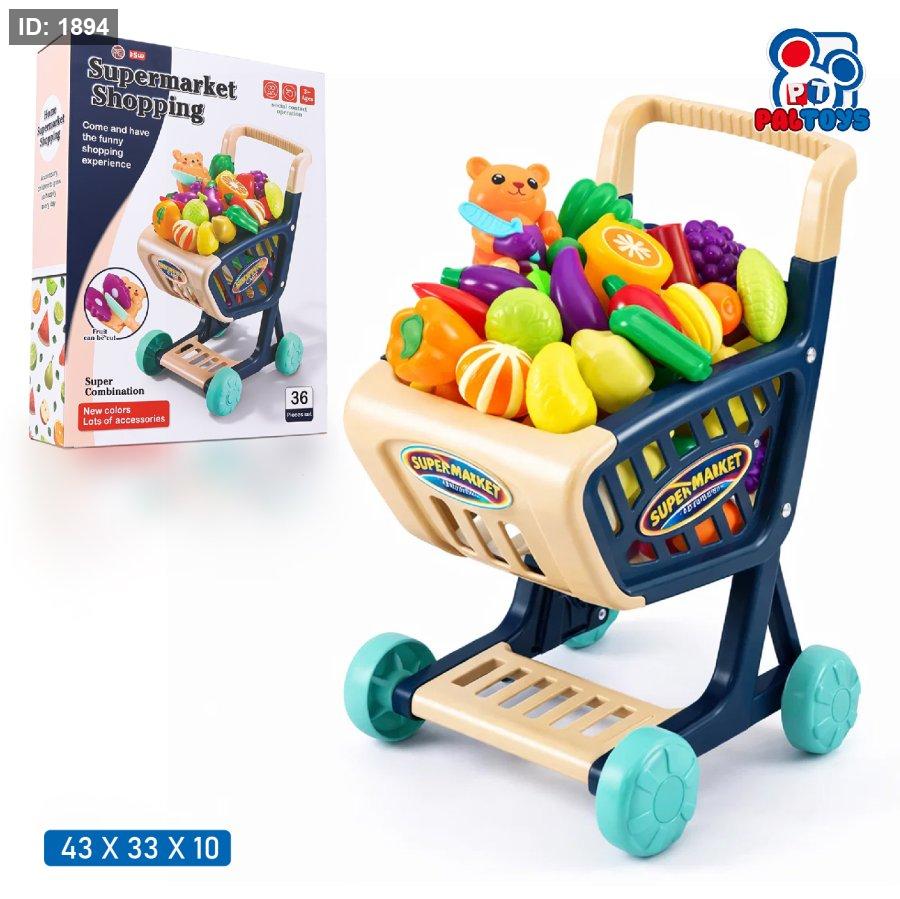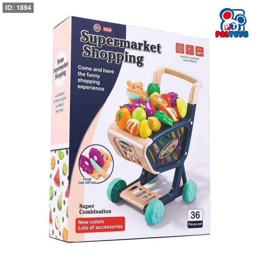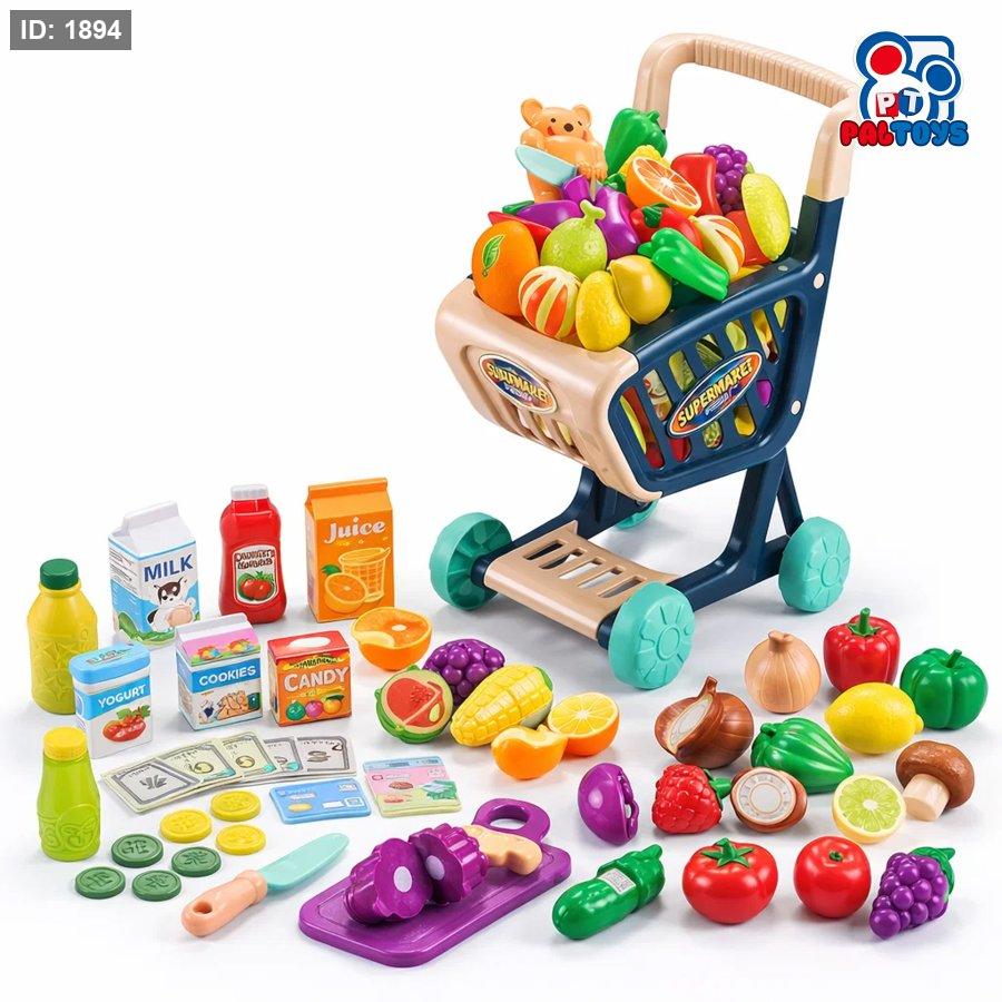 عربة تسوّق سوبرماركت للأطفال مع خضار وفواكه (Supermarket Shopping Cart Set)