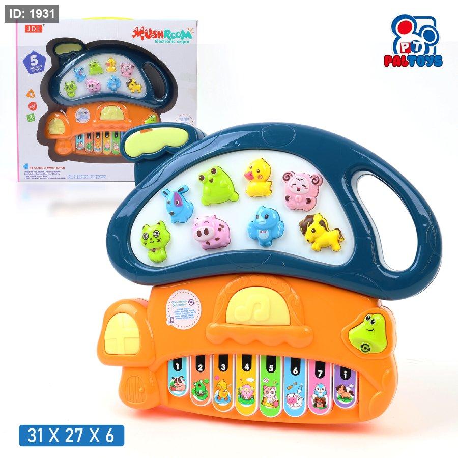 بيانو أطفال شكل فطر إلكتروني تعليمي مع أزرار موسيقية وأضواء