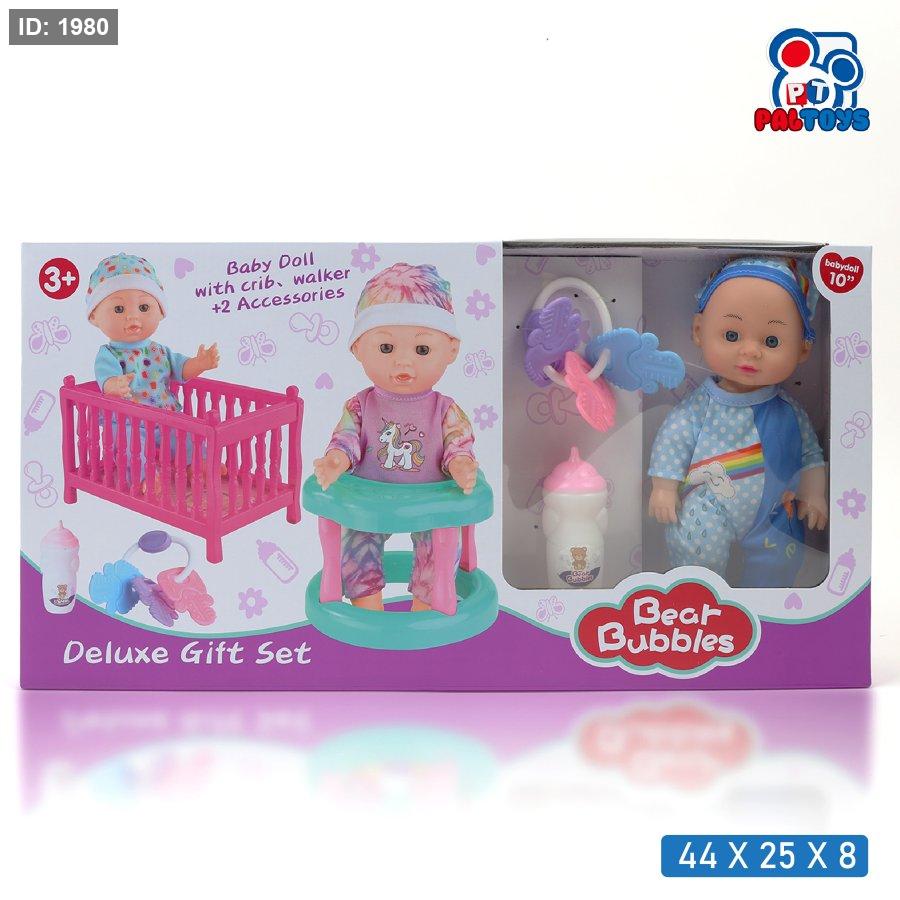 طقم دمية البيبي مع سرير وادوات العناية