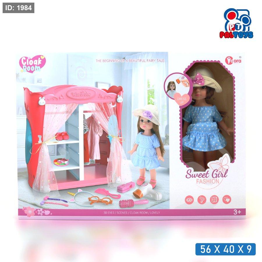 طقم دمية سويت غيرل مع خزانة ملابس وإكسسوارات SWEET GIRL