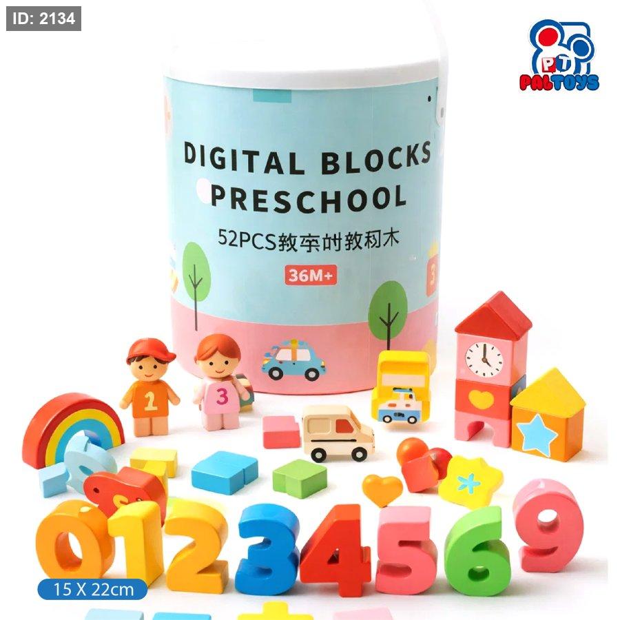برميل مكعبات أشكال خشبية تعليمية للأطفال