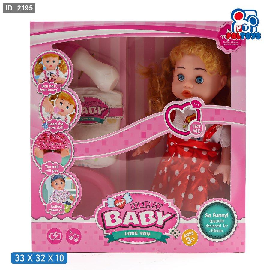 دمية بيبي تفاعلية مع فوطة وادوات العناية ب الطفل happy baby